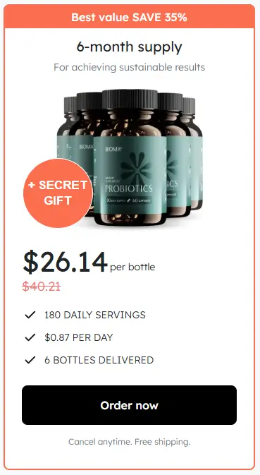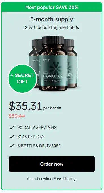 At this moment you can order Bioma Probiotics supplement for 30% OFF + FREE Shipping. This is a Limited-Time Offer and it won’t be available for long.