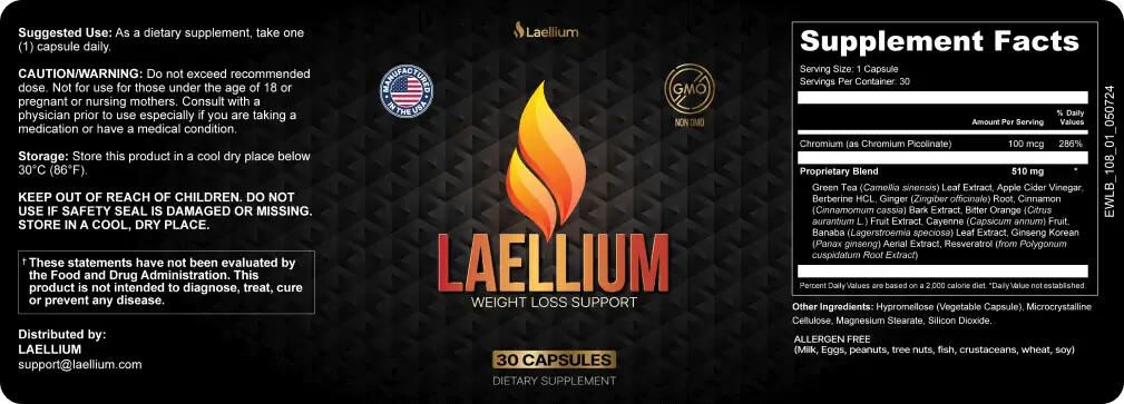Laellium is a dietary supplement formulated with natural ingredients designed to support metabolic balance, appetite regulation, and overall wellness when combined with healthy lifestyle habits.
