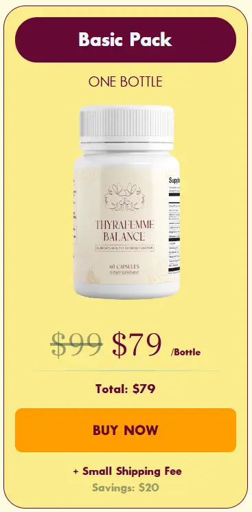 If you’re ready to take control of your hormonal health and feel more energized, balanced, and confident, now is the perfect time to try Thyrafemme Balance. Purchase through the official website to ensure authenticity, quality, and full access to the guarantee — your body deserves this natural support today!